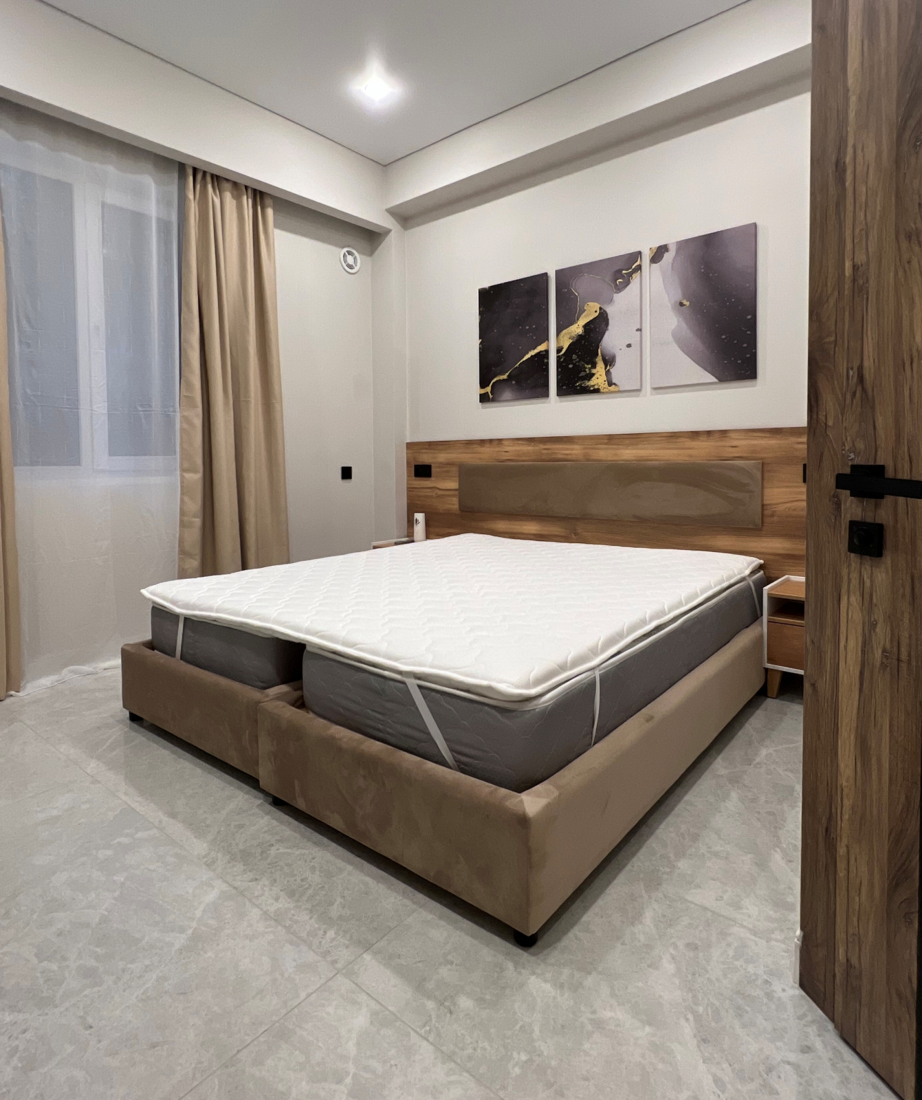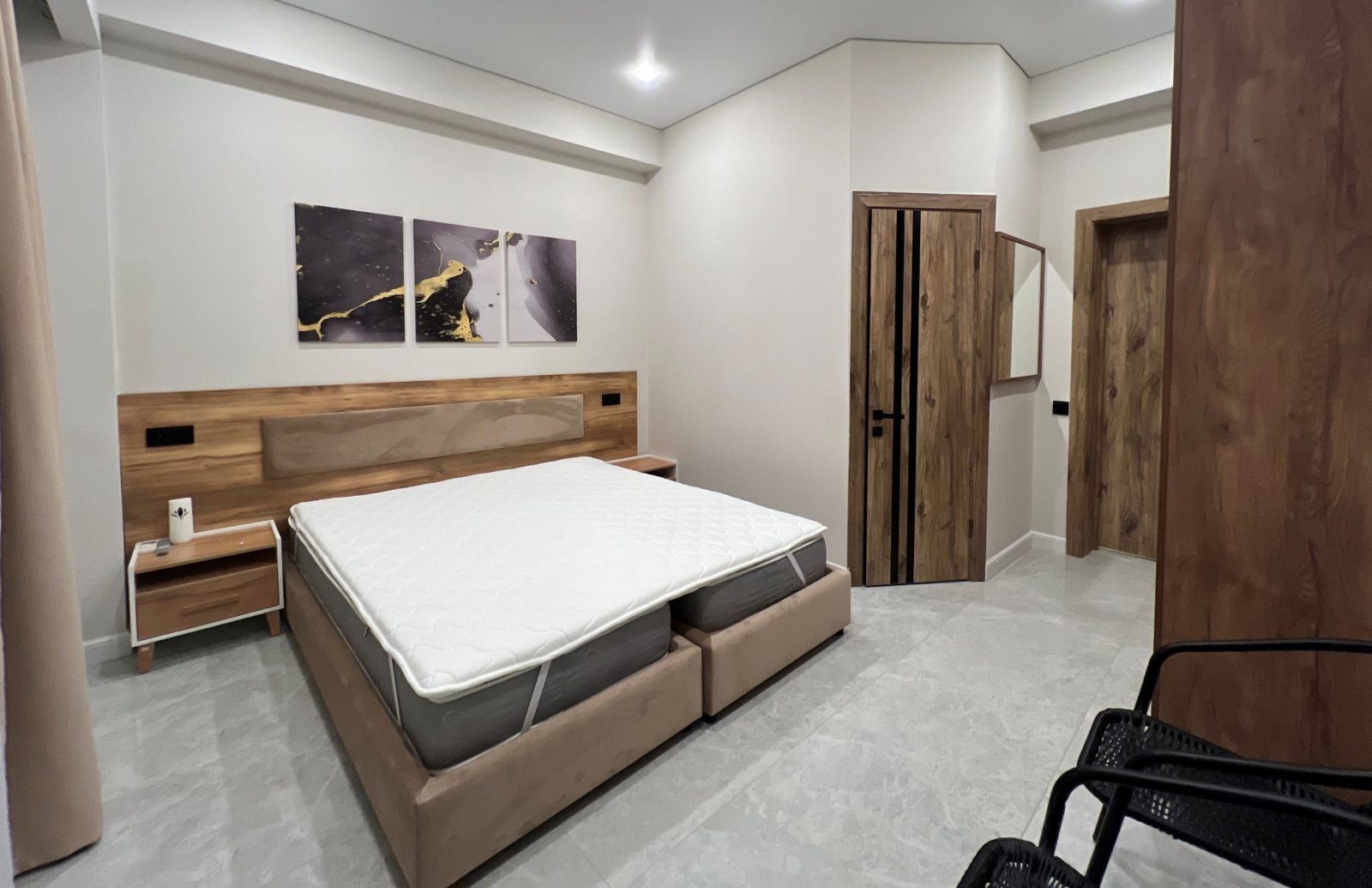 2 осн. места. Мебель: вешалка, зеркало, кровати односпальные /одна двуспальная кровать, прикроватные тумбочки, стулья, шкаф. Оборудование: кондиционер, телевизор, холодильник. Санузел: с душем, туалетные принадлежности. Сервис: Wi-Fi бесплатно, смена полотенец, смена постельного белья, уборка номера.